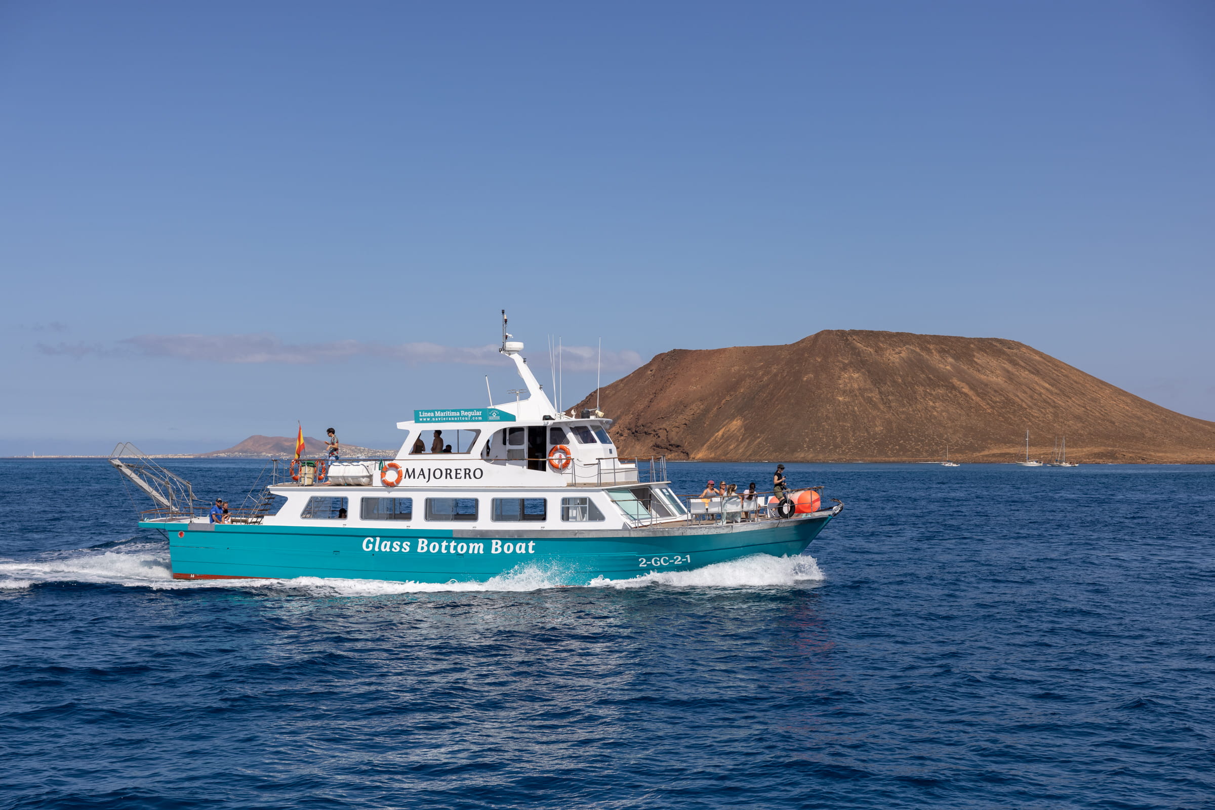 Navega en nuestro ferry con visión submarina a Isla de Lobos. Comodidad, vistas única y bebida a bordo
